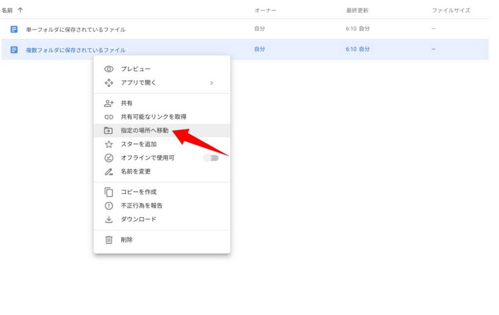 Googleドライブ上で手動で複数フォルダに保存するやり方としては、ファイルを移動させるときとほぼ同じやり方で実現することができます。