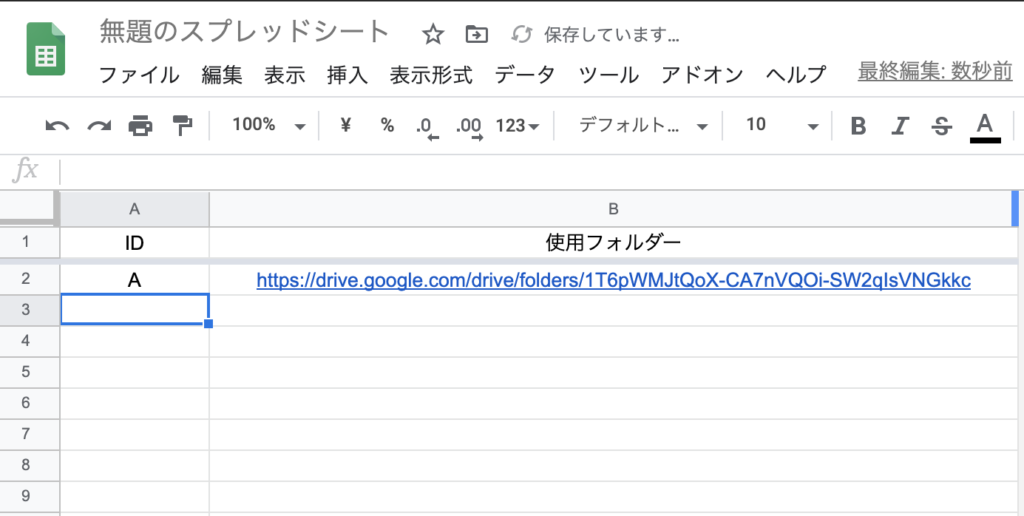 *フォルダURLが入力されない場合は一度スプレッドシートを更新してみてください。