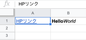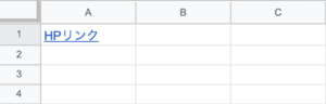このスクリプトを実行するとスプレッドシートのA1セルにHPリンクというリンクが挿入されます。