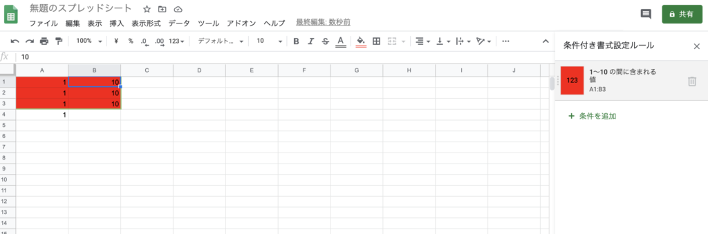 スプレッドシートには条件付き書式の設定があります。